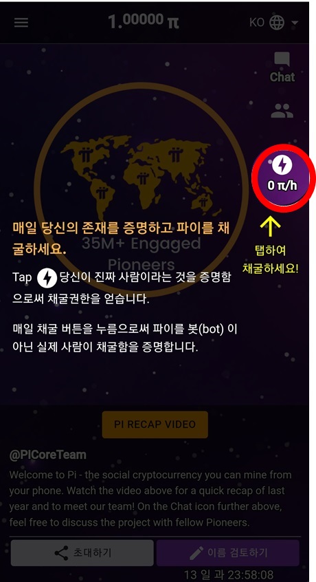(입력하셔야 파이코인 채굴속도가 25% 빨라집니다.)