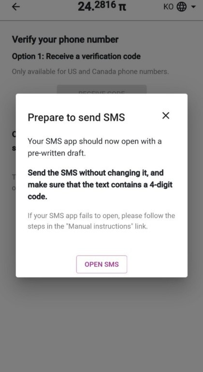 3. 핸드폰 가입 시 나라에 South Korea(+82)를 선택하고 핸드폰 번호 입력
